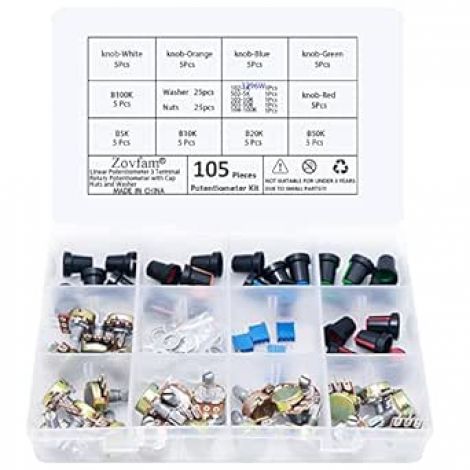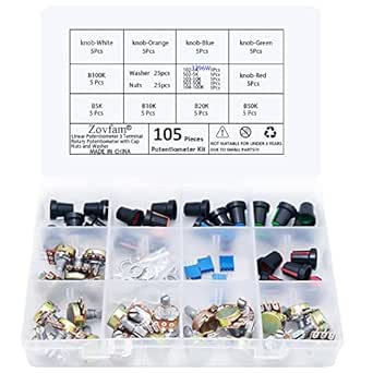 【PERFECT PACK:】Potentiometer assortment packaging was Perfect, All packaged in plastic box. Packed in a rugged convenient resealable plastic storage case, It helps you to always keep the items organized and to transport the potentiometer kit anywhere - forget about the hassle of keeping the items in a bag