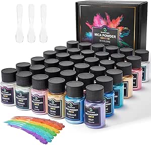 LARGE VARIETY of UNIQUE COLORS: You'll get 36 vibrant unique colors with 6 MIRAGE COLORS and 30 metallic mica powder shades! Each color comes in a (0.35 oz / 10 g) bottle. Meet all the needs of creating bright beautiful crafts you desire!