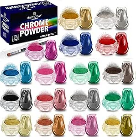 16 Colors Chrome & Holographic Nail Powder Set – Metallic Mirror Effect Pigments for Nail Art, Gel Polish, Acrylic, Dip Nails – Shimmer Powders for Resin Epoxy, Jewelry Making, Crafts & DIY Decoration