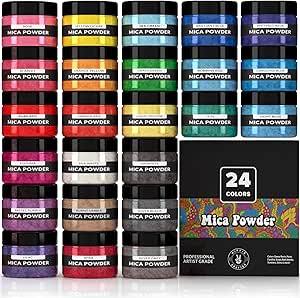 Pigment Powder for Epoxy Resin, 24 Colors, Mica Powder for Candle Dye, Bath Bomb Coloring, Soap Making, Resin Pigment, Metallic Pearl Soap Dye for Candle Making
