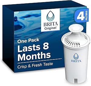 Brita Standard Water Filter for Pitchers and Dispensers, BPA-Free, Reduces Copper, Cadmium and Mercury Impurities, Lasts Two Months or 40 Gallons, Includes 4 Filters for Pitchers