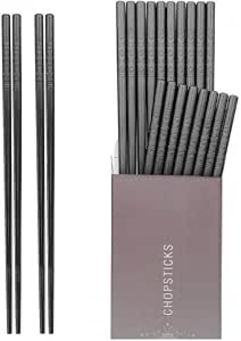 HIWARE 10 Pairs Fiberglass Chopsticks - Reusable Chopsticks Dishwasher Safe, 9 1/2 Inches - Black
