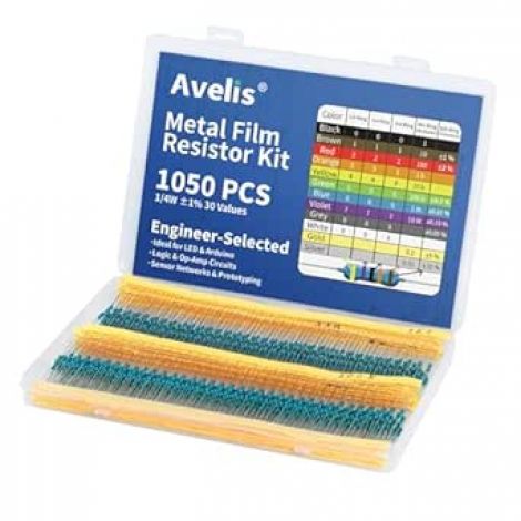 1050 Pcs Complet Kit: This massive resistor kit includes 30 commonly used values from 10 ohm- 1M ohm, 35 each