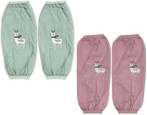 ZORZA 2Pair Cute Waterproof Sleeve Housework Sleeve Cartoon Waterproof Kitchen Arm Sleeves Elk Pattern PVC Oversleeves for Housework Oil-Proof Stain-Resistant Arm Covers for Cooking & Cleaning