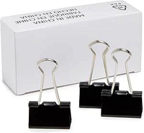 Amazon Basics Sturdy Binder Clips for Office Use, 96 Count (8 Pack of 12), Medium, 1.25 in, Black