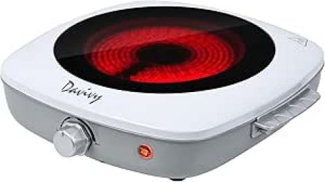 {Compact & User-Friendly}: Davivy Countertop Burner's compact size makes it a breeze to store and transport. Ideal for small apartments, dorm rooms, or even outdoor excursions. The easy-to-clean ceramic panel wipes clean in seconds, and the fixed metal handle offers a sturdy grip. Plus, its lightweight nature means you can move it around with ease.