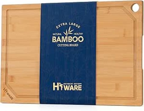 Hiware Extra Large Bamboo Cutting Board for Kitchen, Heavy Duty Wood Cutting Board with Juice Groove, 100% Organic Bamboo, Pre Oiled, 18" x 12"