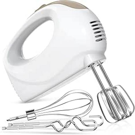 Handmixer - 5 Speed Portable Kitchen Mixer Electric Handheld with 5 Stainless Steel Accessories Whisk, Food Beater, Ivory