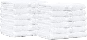Amazon Basics Cotton Washcloths for Bathroom, Soft and Highly Absorbent, 12 in x 12 in, White, 12-Pack