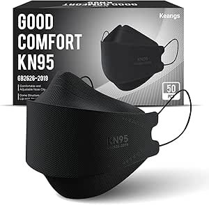 Keangs KN95 Face Masks 50 Pack, Soft and Comfortable Disposable Face Masks for Adults And Teens, Black