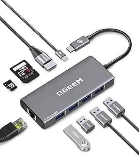 QGeeM USB C Hub Ethernet,9 in 1 USB Type C Hub HDMI Multi-Port Converter Adapter,100W Pd, USB 3.0,SD/TF Card Reader,Compatible for MacBook Pro Air Ipad HP Dell Lenovo Chromebook etc.-Gray