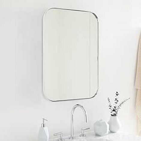 STAINLESS STEEL SEAMLESS METAL FRAME: Our rounded edge rectangle mirror uses preminum quality stainless steel material , menawhile there is NO seam on the metal frame to achieve a elevated look . Rust and Corrosion Free when wall mounted, designed for bathroom grade use