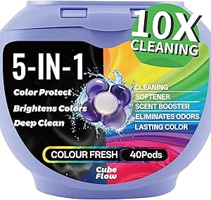 All-in-1 Laundry Detergent Pods | 10X Deep Clean | Prevents Color Bleed, Eliminates Odors & Locks in Floral Freshness | with Color Protection Technology | 5-in-1 Power, 40 Count