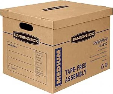 Bankers Box Medium Classic Moving Box 8 Pack, Reinforced Handles, Tape-Free Assembly, Box with Lid, 19-in x 14.5-in x 15.5-in (7717201)