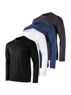 Real Essentials 4 Pack: Men's Dry-Fit UV Moisture Wicking UPF 50+ SPF Sun Protective Fishing Hiking Swim Long Sleeve Shirt