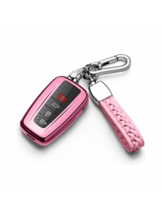 Toyota Key Fob Cover with Keychain Soft TPU Key Shell Case,For 2020-2024 Highlander 2018-2024 RAV4 Camry C-HR Corolla Avalon Prius GT86 (Pink)
