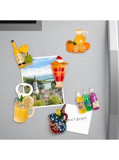 6-Pack Fruit Juice Fridge Magnets 3D Resin Magnet Refrigerator Stickers Champagne Bottle Opener Juice Cup Wine Glass for Refrigerators, Whiteboards, Maps and Other Magnetic Items