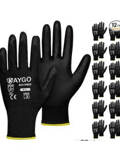 KAYGO Safety Work Gloves PU Coated-12 Pairs, KG11PB, Seamless Knit Glove with Polyurethane Coated Smooth Grip on Palm & Fingers, for Men and Women, Ideal for General Duty Work (Large, Black)