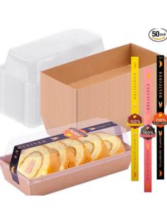 Lainrrew 50 Sets Roll Cake Box, Swiss Roll Plastic Containers Sandwich Paper Box with Clear Lids Muffin Cheese Pastry Dessert Box Sushi Fruits Display Food Storage Holder Cupcake Container Box