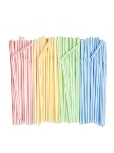Comfy Package, Flexible Disposable Plastic Drinking Straws - 7.75" High - Assorted Colors Striped [200 Pack]