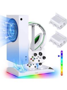 Gorixer Charging & Cooling Fan Stand for Xbox Series S, Dual Controller Charger Station & Cooler System with 15 LED Light Modes, Headset Hook,USB C Cable, Accessories for XSS with 2x1400mAh Batteries