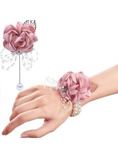 Rose Wrist Corsage Boutonniere Set,Wrist Flower Corsage Wristlet Band Bracelets and Men's Boutonniere for Wedding Flowers Accessories Prom Suit Decor