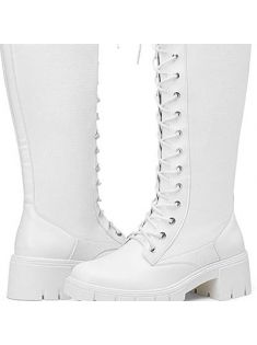 Vepose Women's 953 Lace Platform Combat Knee High Boots with Comfort Chunky Heel