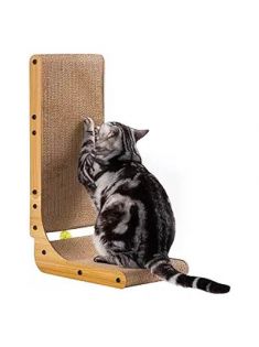 Poils bebe L Shape Cat Scratcher, 26.8 Inch Cat Scratchers for Indoor Cats, Protecting Furniture Cat Scratch Pad, Cardboard Cat Scratching with Ball Toy, Catnip, Large