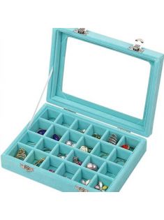 LANTWOO 24 Grids Velvet Glass Ring Earrings Jewelry Box Earrings Organiser Storage Holder Display Case