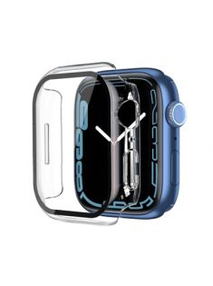 Case Built in Tempered Glass Screen Protector Compatible with Apple Watch Series 9 45mm/Series 8 45mm/ Seires 7 45mm, Hard PC Case Overall Protective Cover- Transparent
