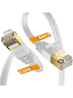 Cat7 10FT Ethernet Cable White-10Gbps Shielded & Ground Wire Internet Network Flat Cord,Ultra Slim Gold-Plated RJ45 Cat 7 LAN Line with Cable-Tie for Router,Mac,Xbox,PS5,NAS,Cat6A