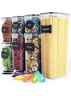 Airtight Food Storage Containers for Kitchen Organization 7 PC - Plastic Food Canisters with Lids, Labels, Marker & Spoons for Pantry Organization and Storage - Cereal, Flour and Sugar Containers