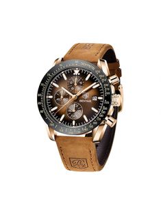 BENYAR Mens Watches Quartz Movement Chronograph Leather Strap Fashion Business Sport Design 30M Waterproof Scratch Resistant Wristwatch Elegant Watch Gifts for Men