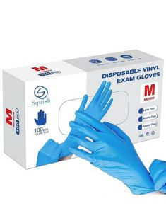 squish Disposable Gloves, 100Pcs Blue Vinyl Blend Exam Gloves Non Sterile, Powder Free, Latex Free - Cleaning Supplies, Kitchen and Food Safe(Pack of 100) (Blue Medium)