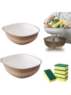 Colander Bowl Set, 2 Pack with 5 Pcs Cleaning Sponges, Large Capacity Plastic Food Strainer for Pasta, Vegetables and Fruits Washing Draining Basket, Space Saving, BPA Free (Brown)
