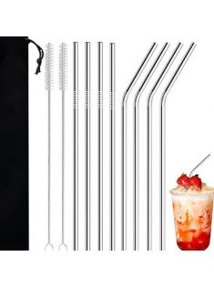 Stainless Steel Straws 8 pcs, Large 125mm (L)* 8mm (D) 4 Straight and 4 Curve for 30 Oz Tumblers, Reusable Enviro Friendly straws with 2 Brushes, Clothing Bag Package for Parties/Home/Bar/Inns
