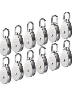 12Pcs Single Pulley Block (M15), AUHOKY 304 Stainless Steel Hanging Wire Towing Wheel, Swivel Lifting Wire Rope Cable Pulley Roller, Max-Load 35kg/77lbs