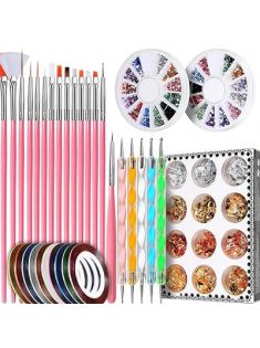 Teenitor Nail Pen Designer, Stamp Nail Art Tool with 15pcs Nail Painting Brushes, Nail Dotting Tool, Nail Foil, Manicure Tape, Color Rhinestones for Nails