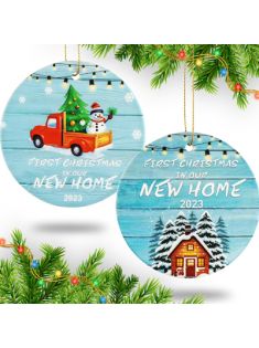 New Home Decoration 2023, the first Christmas of new home decoration, a 3.5-inch (approximately 8.9cm) double-sided printed ceramic decoration housewarming gift suitable for couples, new homeowners, Christmas tree decoration