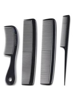Mars Wellness 4 Piece Professional Comb Set Black - USA MADE - Fine Pro Tail Combs, Dresser Hair Comb Styling Comb - Premium Grade for Men and Women - Parting Teasing and Styling