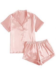 Women's Sleepwear Satin Silky Short Sleeve Top with Shorts Pajama Set