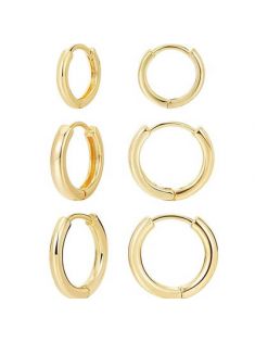 3 Pairs 14K Gold Plated Huggie Hoop Earrings for Women, Minimalist Gold Huggie Hoop Earrings, Simple 3 sizes Hoop Earrings for Women Men gift,gold silver rose gold and black
