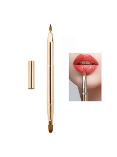 Lip Brush Retractable, Dual-ended Lip Brush Lipstick Applicator with Protective Lid, Makeup Brushes for Lip Gloss, Lip Mask, Eyeshadow, Lip Cream, Golden