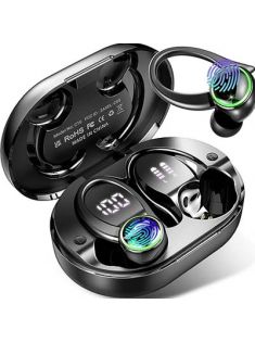 Headphones Bluetooth 5.3 Wireless Earbuds ENC Noise Cancelling Mic, Bass Stereo Over Ear buds with Earhooks, 48H Playback and Dual LED Display, IP7 Waterproof Earphones for Sports/Workouts/Gym/Gaming