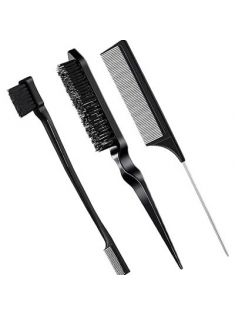 Geiserailie 3 Pcs Slick Back Hair Brush Set Bristle Hair Brush Edge Control Brush Teasing Comb for Women Baby Kids' Black Hair (Black)