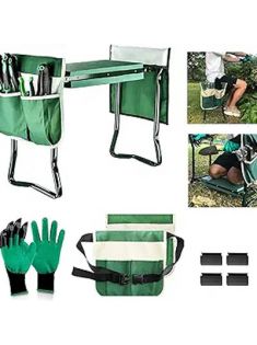 Garden Kneeler and Seat Stool Heavy Duty Garden Folding Bench with Large RemovableTool Pocket Gloves and Soft EVA Kneeling Pad for Gardening Lovers