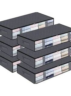 StorageRight Storage Bags,Under bed Storage Containers With Durable Handles,Large Capacity Bins,Foldable Storage Organizers For Clothes,Bedding and Toys-75L/6 Pack/Grey