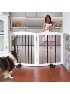 Freestanding Foldable Indoor Dog Fence for Stairs Wood White Long Pet Gates for Dogs, Dog Gates for Hallways,Puppy Gates for House Support Feet Included 24 "Height-2 Panels