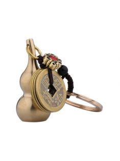 Feng Shui Chinese Coins with Brass Gourd, Wu Lou, Hu Lu, Lou Shui Keychain