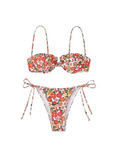 Women's Floral Print Underwired Tie Side 2 Piece Bikini Set Cute Swimsuit